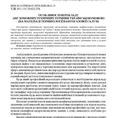 2021/09/27Особливості перекладу англомовних технічних термінів українською мовою (на матеріалі термінології нафтогазової галузі