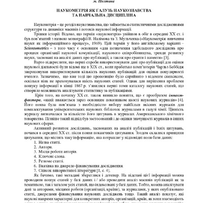 2023/10/11Наукометрія як галузь наукознавства та навчальна дисципліна