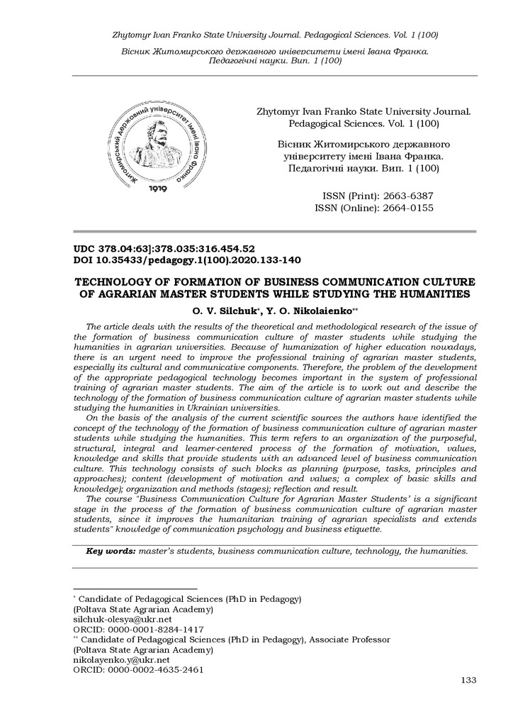 2025/12/23Technology of formation of business communication culture of agrarian master students while studying the humanities