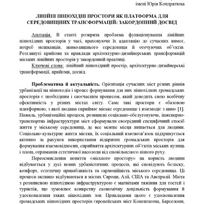 Лінійні пішохідні простори як платформа для середовищних трансформацій