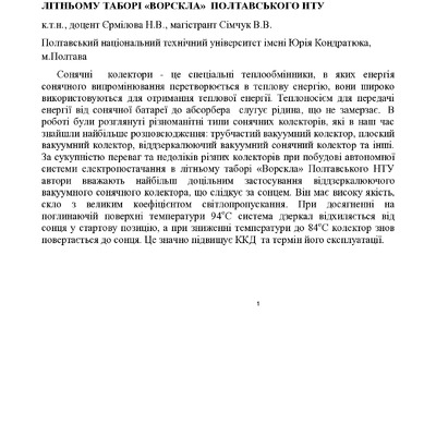 Доцільність використання вакуумних сонячних колекторів при побудові автономної системи електропостачання у літньому таборі Ворскла Полтавського НТУ