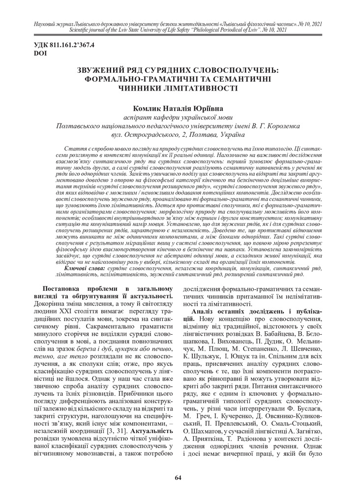 2025/03/31Звужений ряд сурядних словосполучень: формально-граматичні чинники лімітативності.