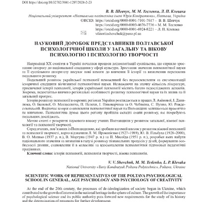 2025/12/04Науковий доробок представників Полтавської психологічної школи у загальну та вікову психологію і психологію творчості