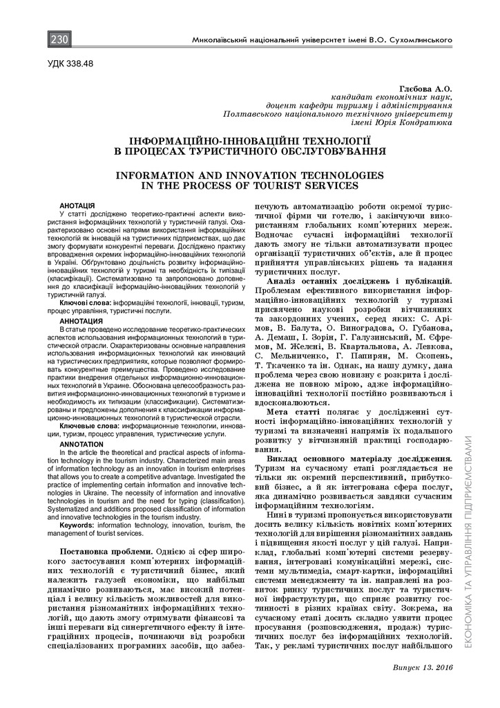 Інформаційно-інноваційні технології в процесах туристичного обслуговування