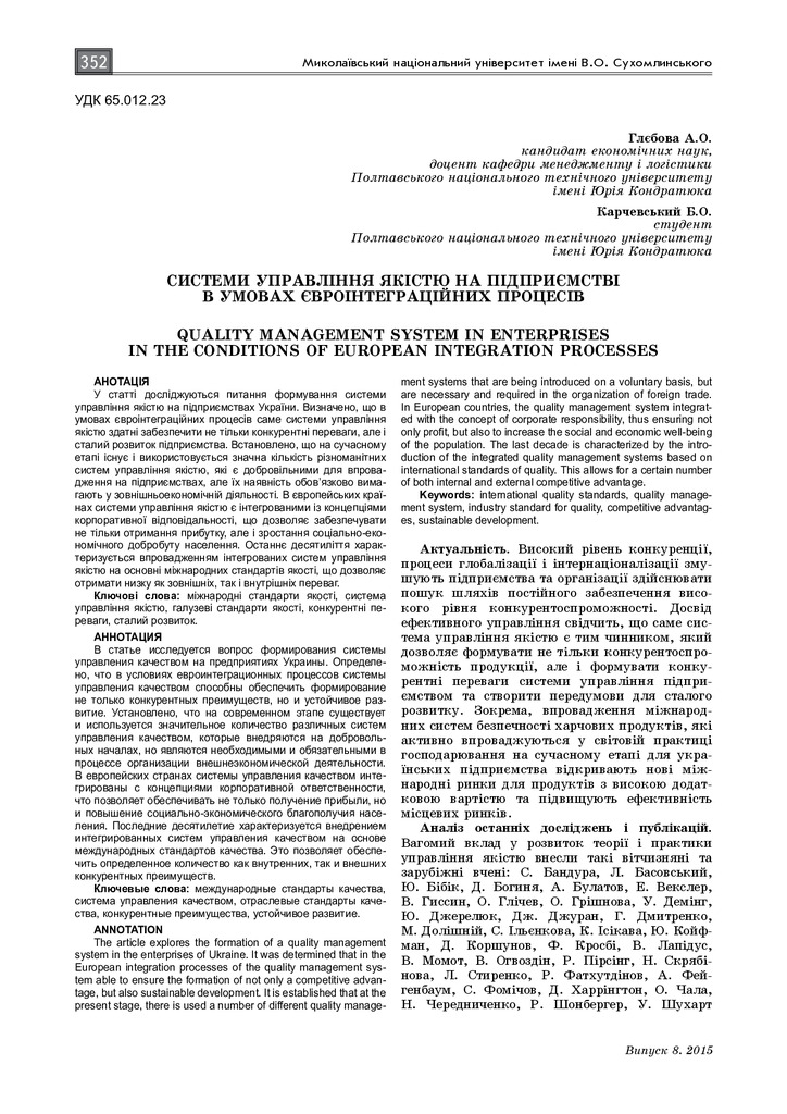 Системи управління якістю на підприємстві в умовах євроінтеграційних процесів