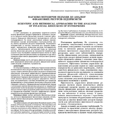 Науково-методичні підходи до аналізу фінансових ресурсів підприємств