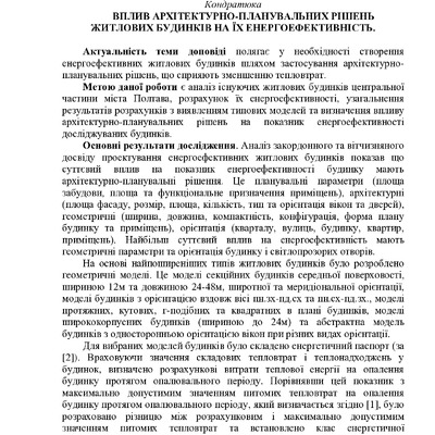 Вплив архітектурно-планувальних рішень житлових будинків на їх енергоефективність