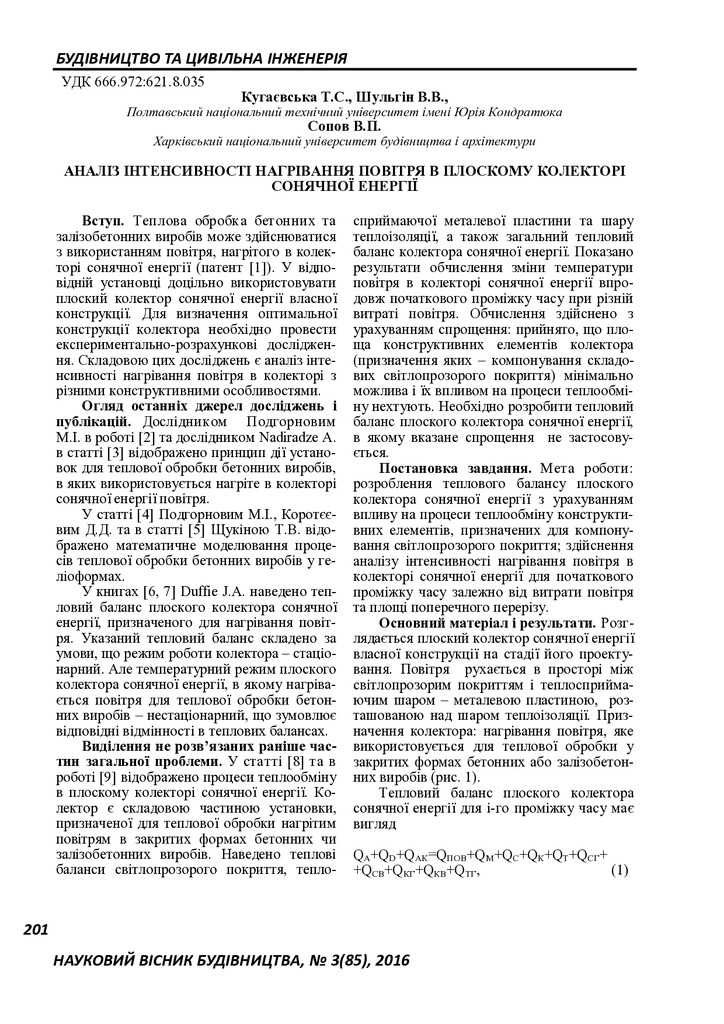 Аналіз інтенсивності нагрівання повітря в плоскому колекторі сонячної енергії