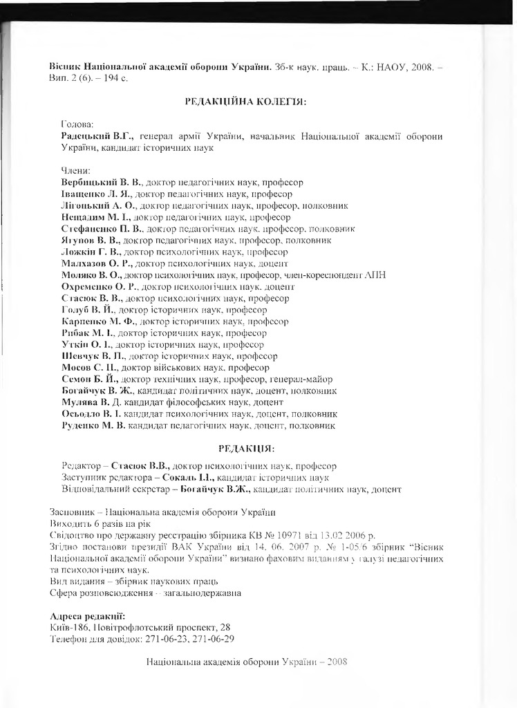 2020/04/09Формування національних ціннісних орієнтацій та громадянських якостей особистості: тенденції та причини змін у процесі навчання у вищому військовому навчальному закладі