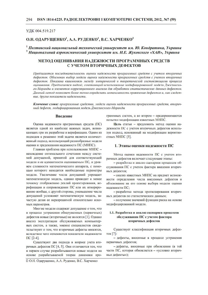 2017/10/12Модели оценки надежности программных средств с учетом недетерминированного числа вторичных дефектов
