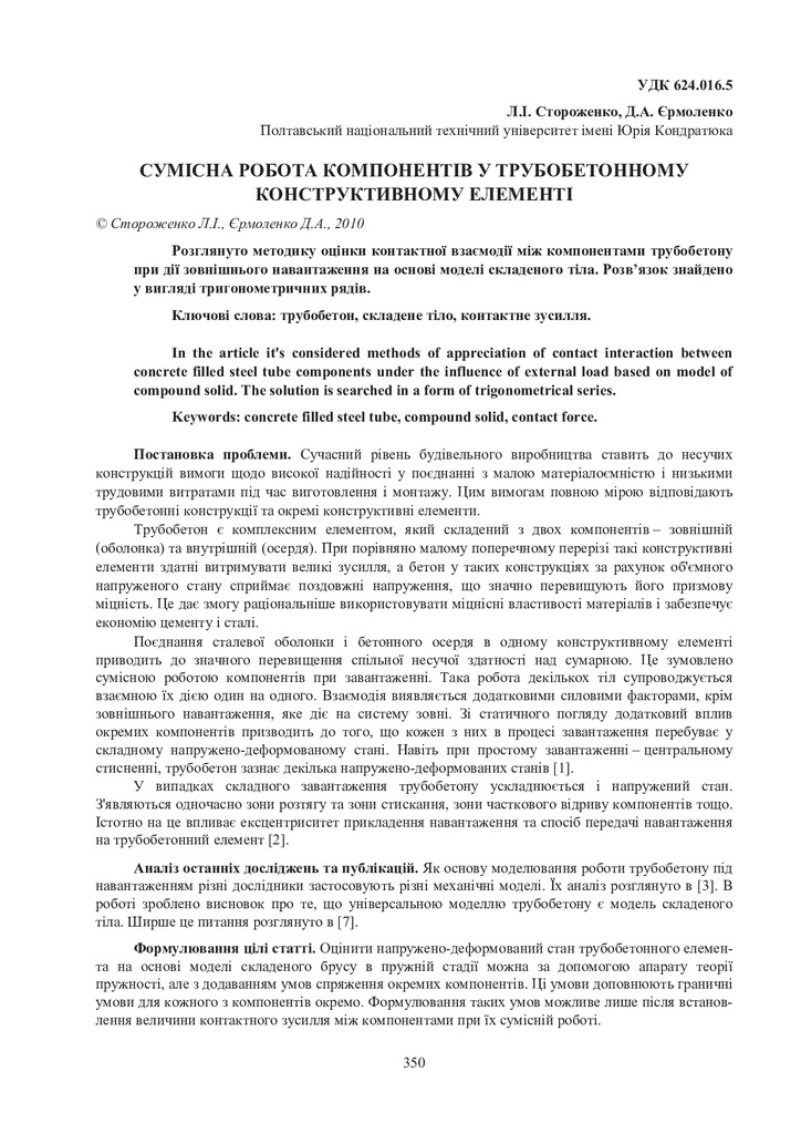 Окреслено низку вирішених питань, що виникають під час запровадження нелінійних деформаційних методів (деформаційної моделі) розрахунку сталезалізобетонних конструкцій у сучасні вітчизняні будівель...