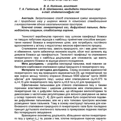 Запропоновано спосіб спалювання суміші генераторного і природного газу у широких межах їх кількіс...