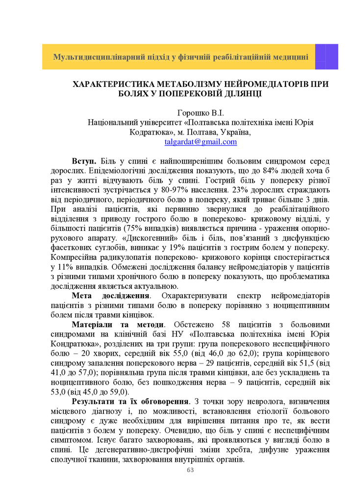 2023/06/05Характеристика метаболізму нейромедіаторів при болях у поперековій ділянці