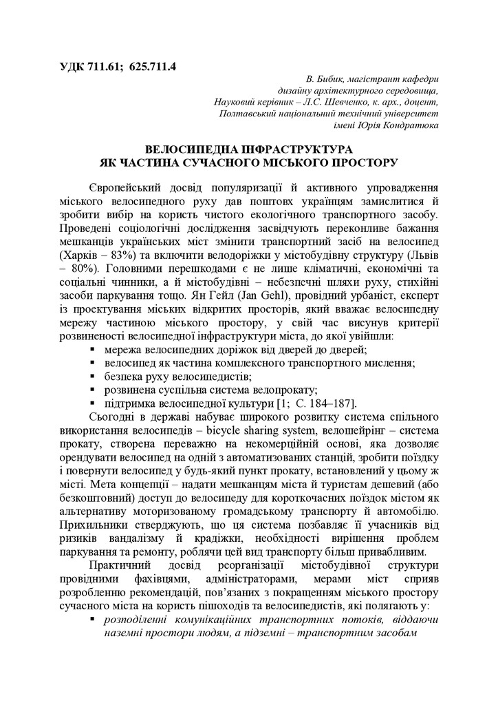 Велосипедна інфраструктура як частина сучасного міського простору