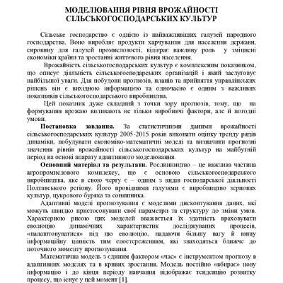 Моделювання рівня врожайності сільськогосподарських культур