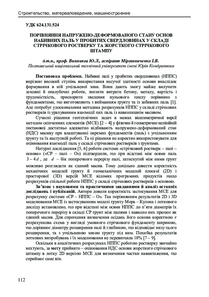 2020/05/29Порівняння напружено-деформованого стану основ набивних паль у пробитихсвердловинах у складі стрічкового ростверку та жорсткого стрічкового штампу
