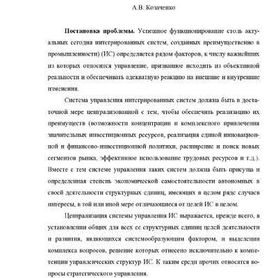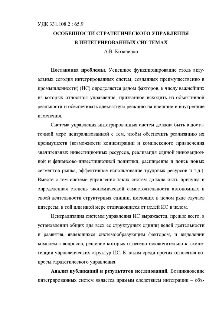 Особенности стратегического управления в интегрированных системах