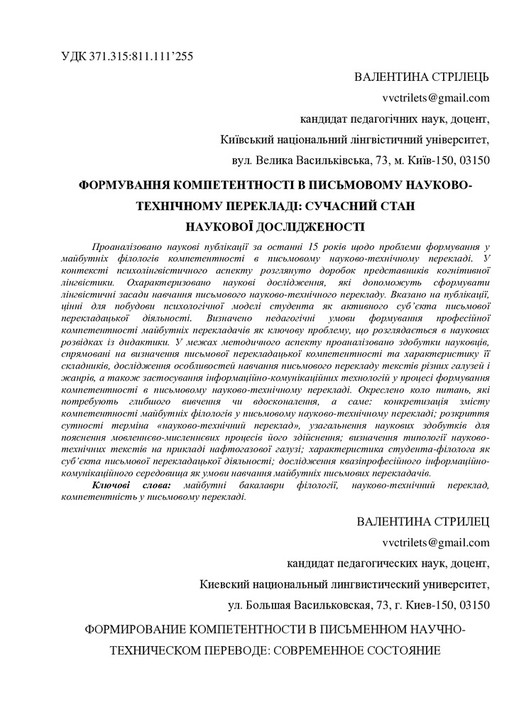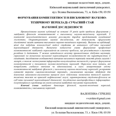 Стаття 2018/08/05Формування компетентності в письмовому науково-технічному перекладі: сучасний стан наукової дослідженості