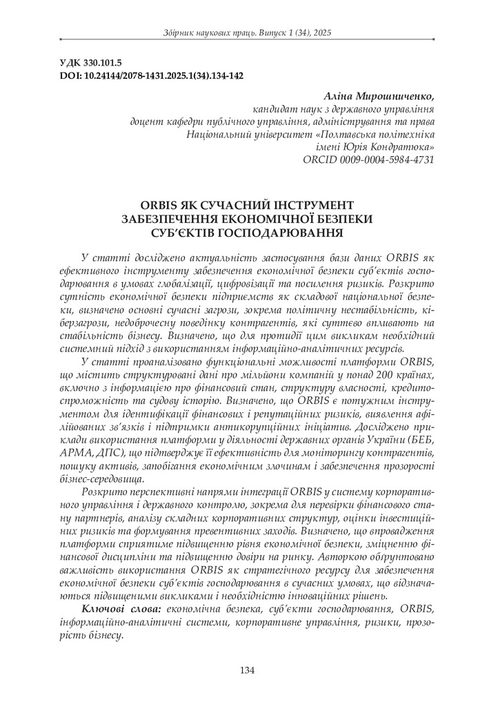 2025/12/02ORBIS як сучасний інструмент забезпечення економічної безпеки суб’єктів господарювання