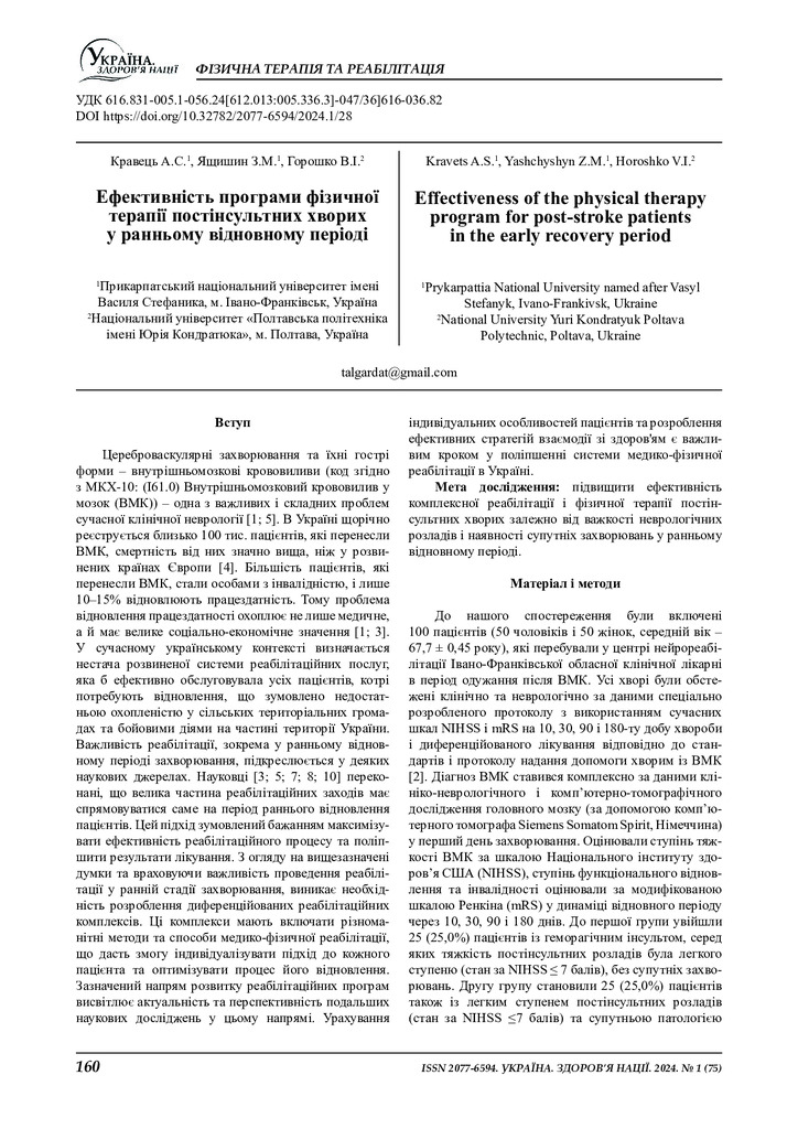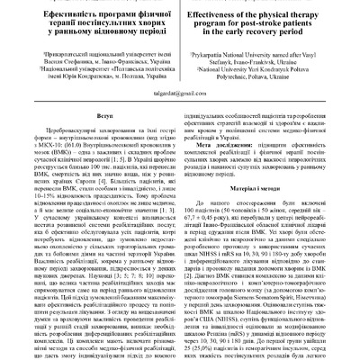 2024/12/19Ефективність програми фізичної терапії постінсультних хворих у ранньому відновному періоді
