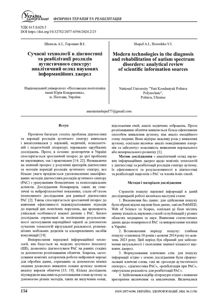 2024/12/23Сучасні технології в діагностиці та реабілітації розладів аутистичного спектру: аналітичний огляд наукових інформаційних джерел