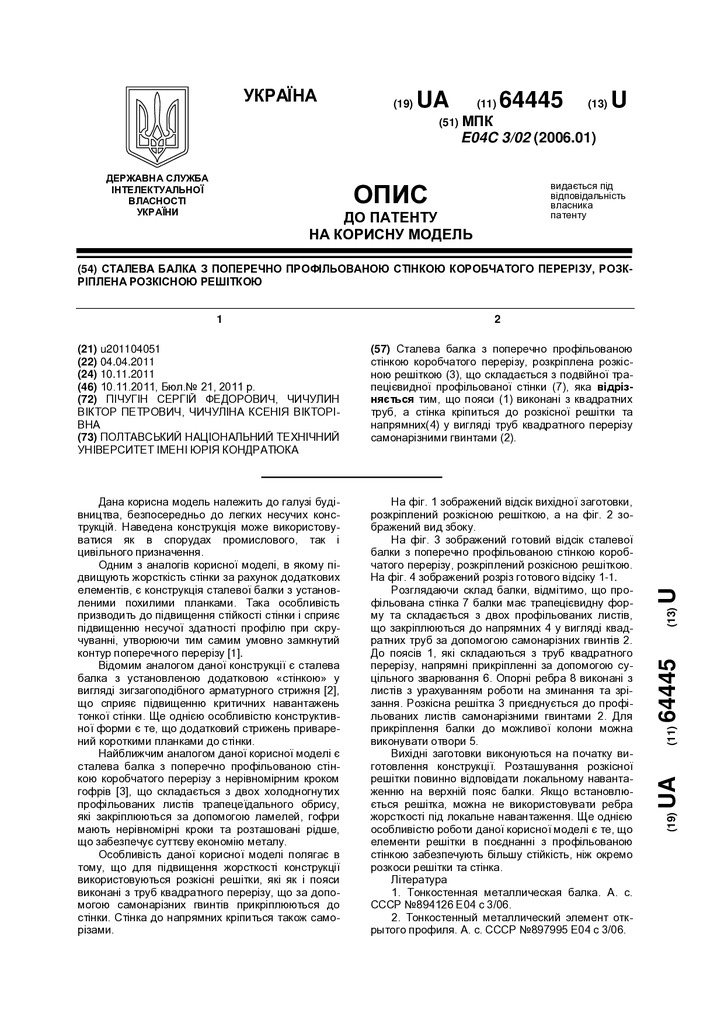 Стаття 2019/12/06Сталева балка з поперечно профільованою стінкою коробчастого перерізу, розкріплена розкісною решіткою