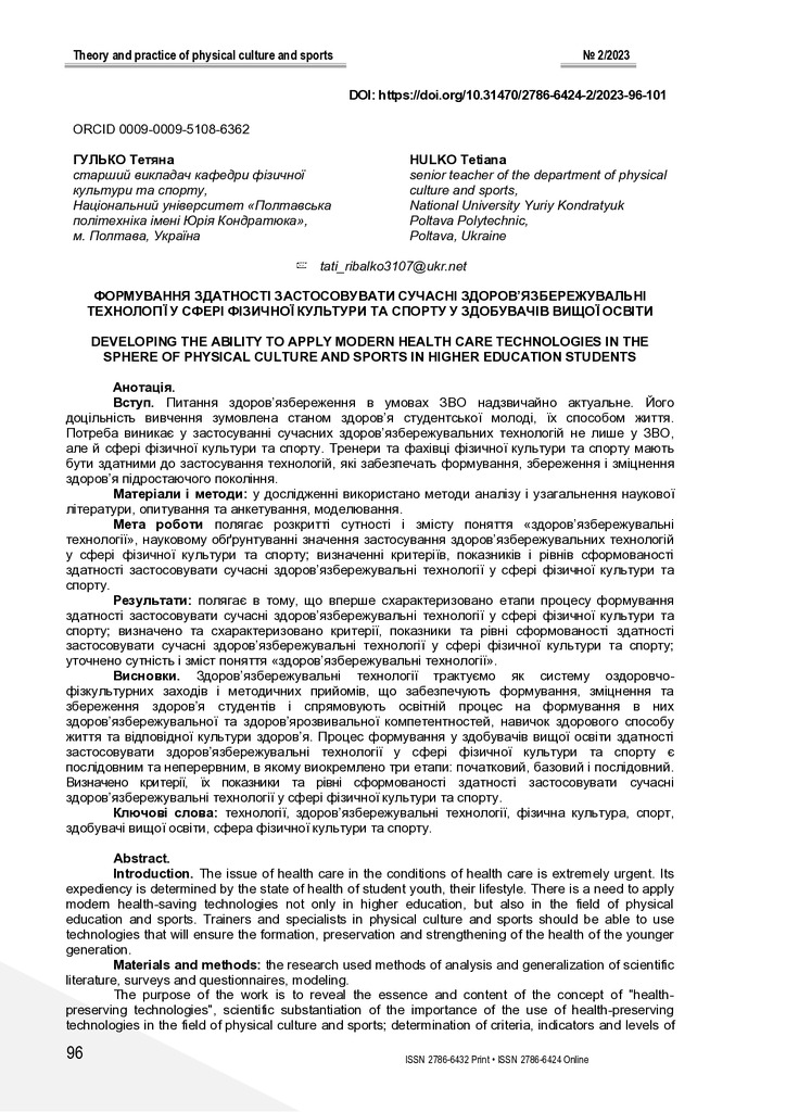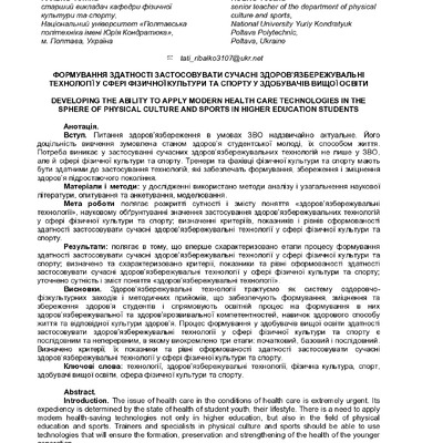 2024/11/05Розвиток умінь застосовувати сучасні оздоровчі технології у сфері фізичної культури і спорту у студентів вищих навчальних закладів