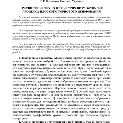 Расширение технологических возможностей процесса плоского торцового шлифования