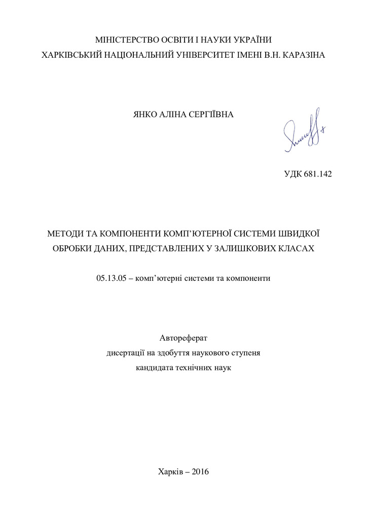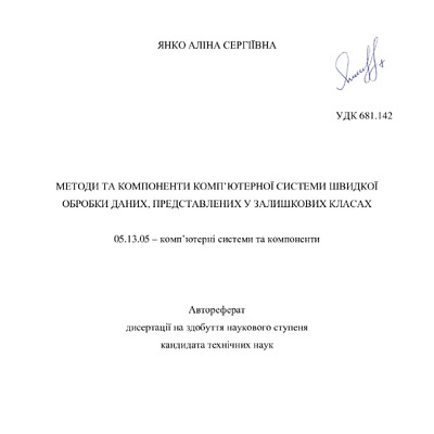 Стаття 2023/02/10Методи та компоненти комп’ютерної системи швидкої обробки даних, представлених у залишкових класах : автореферат