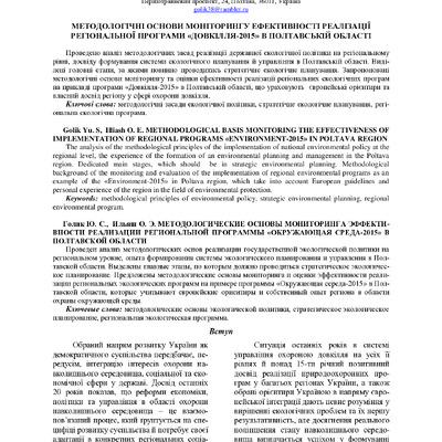 Стаття 2020/07/21Методологічні основи моніторингу ефективності реалізації регіональної програми "Довкілля-2015" в Полтавській області