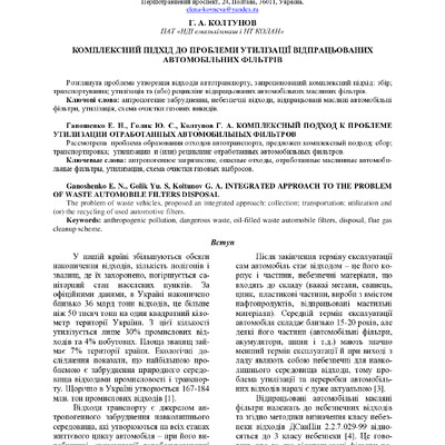 Стаття 2020/07/21Комплексний підхід до проблеми утилізації відпрацьованих автомобільних фільтрів