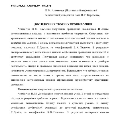 Стаття 2020/07/21Дослідження творчих проявів учнів