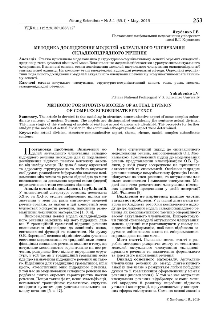 Методика дослідження моделей актуального членування складнопідрядного речення