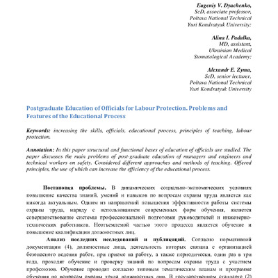 Postgraduate Education of Officials for Labour Protection. Problems and Features of the Educational Process