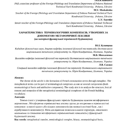 Xарактеристика термінологічних комплексів, утворених за допомогою метафоричної лексики (на матеріалі французької термінології будівництва)