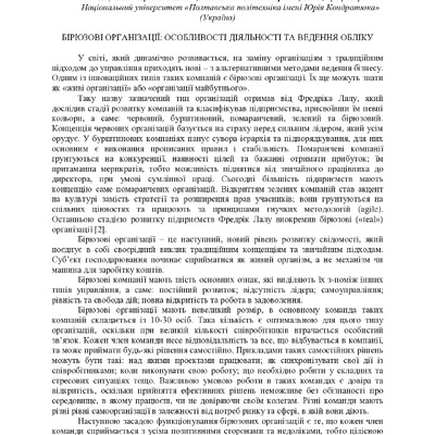 Розкрито особливості роботи бірюзових компаній, а саме: постійний розвиток, відсутність лідера, с...