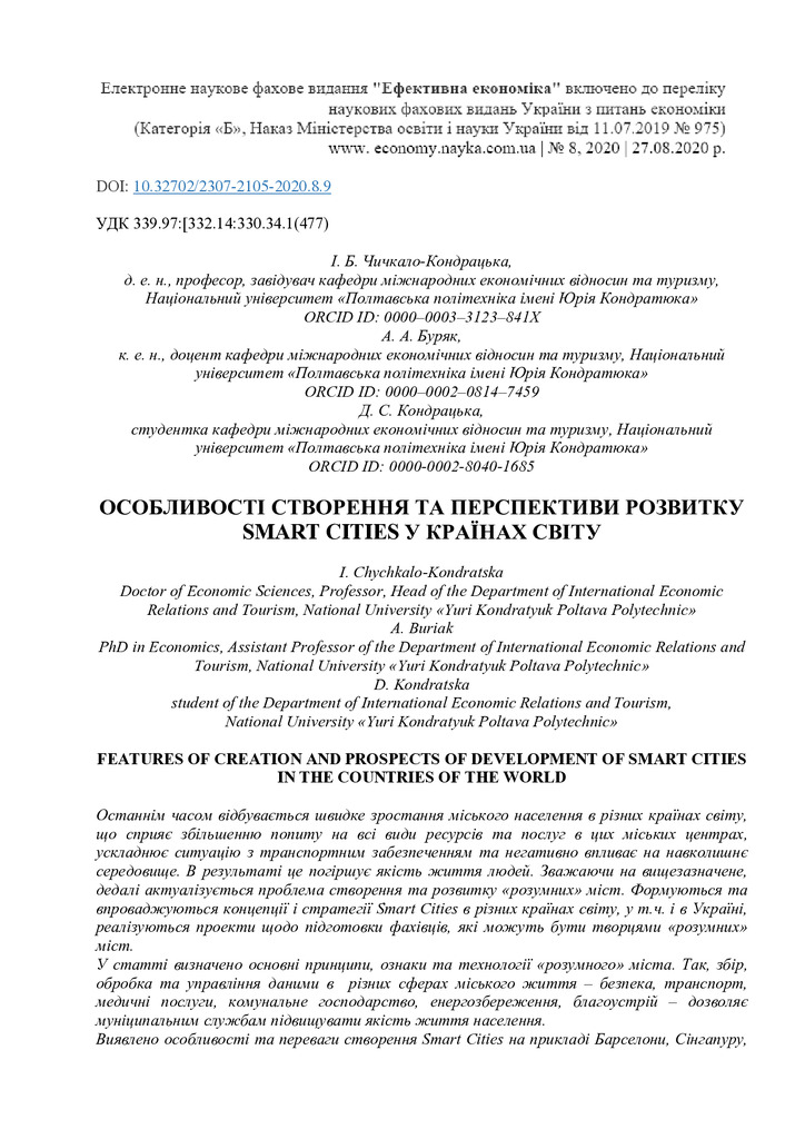 Особливості створення та перспективи розвитку smart cities у країнах світу