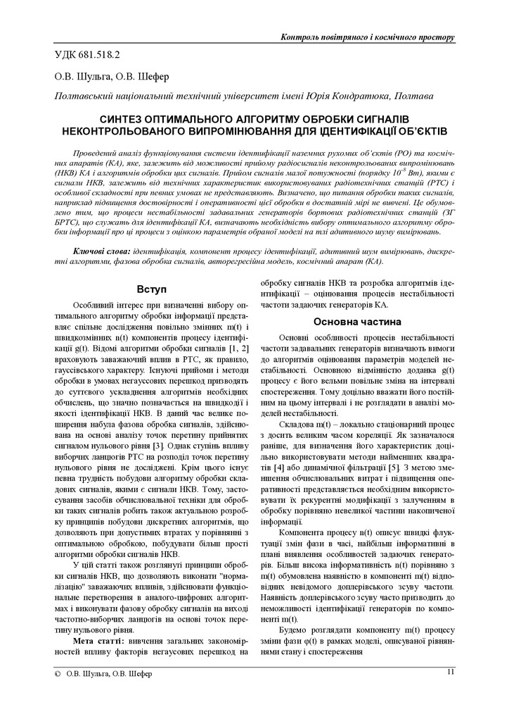 2018/10/31Синтез оптимального алгоритму обробки сигналів неконтрольованого випромінювання для ідентифікації об’єктів.