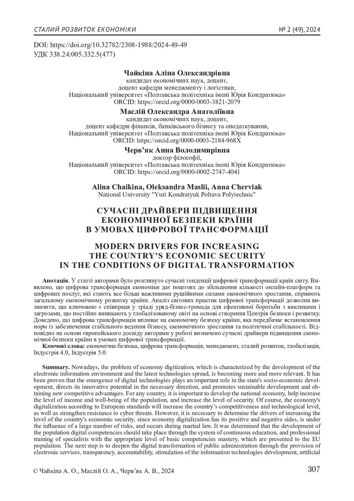 2024/07/10Сучасні драйвери підвищення економічної безпеки країни в умовах цифрової трансформації