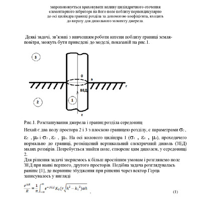 У статті запропоновано врахувати вплив циліндричного оточення елементарного вібратора на його полепоблизу перпендикулярної до осі циліндра границі розділу за допомогою коефіцієнта, який входить до ...