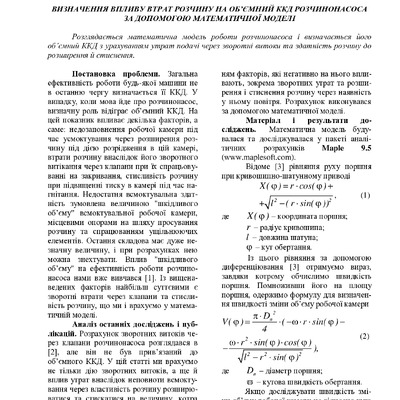 2017/02/07Визначення впливу втрат розчину на об’ємний ККД розчинонасоса за допомогою математичної моделі