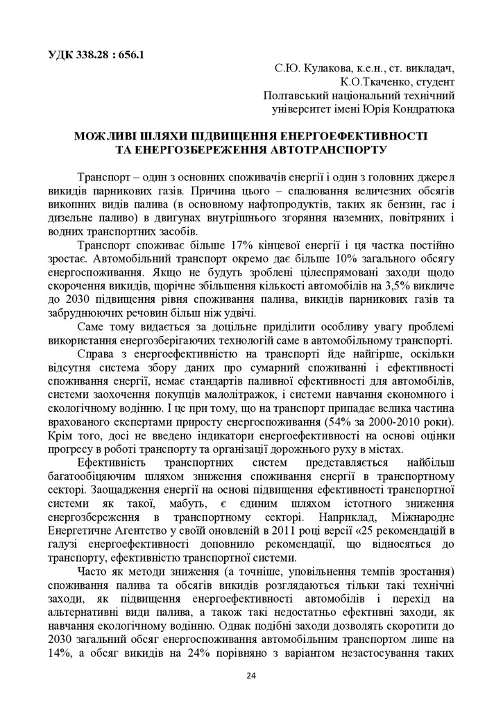 Можливі шляхи підвищення енергоефективності та енергозбереження автотранспорту