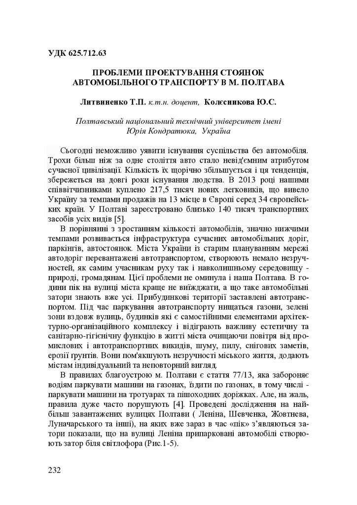 Проблеми проектування стоянок автомобільного транспорту в м. Полтава