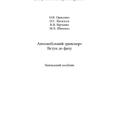 Автомобільний транспорт. Вступ до фаху