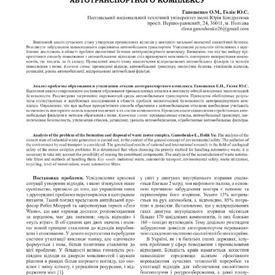 Аналіз проблеми утворення та утилізації відходів автотранспортного комплексу