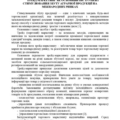 Трейд-маркетинг як основний інструмент стимулювання збуту аграрної продукції на міжнародних ринках