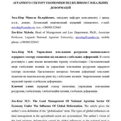 Управління земельними ресурсами національного аграрного сектору економіки під впливом глобальних деформацій