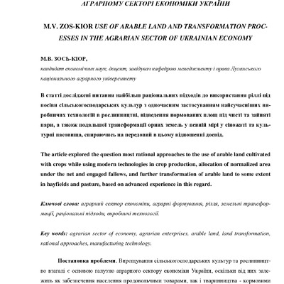 Стаття 2016/08/08Використання орних земель і трансформаційні процеси в аграрному секторі економіки України