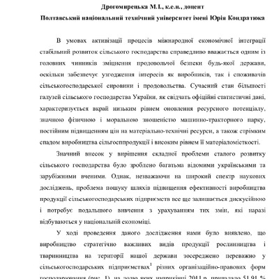 В умовах активізації процесів міжнародної економічної інтеграції стабільний розвиток сільського господарства справедливо вважається одним із головних чинників зміцнення продовольчої безпеки будь-як...