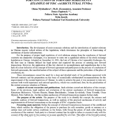 Determination of Essence and Practical Mechanism for Conclusion of Forward Agreements (example of PJSC «Agrarian Fund»)